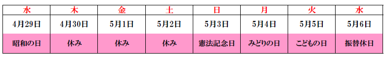 上記期間中のご依頼、お問合せに関しましては、5月7日(木)10:00より順次、ご対応させていただきます。